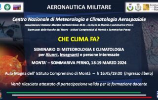 Nelle giornate del 18 e 19 marzo a Montà (cn) si terrà il seminario "Che clima fa?":un'occasione di formazione gratuita di altissimo livello, a cura del servizio di Climatologia con il Centro di Meteorologia e Climatologia Aerospaziale dell’ Aeronautica Militare. [...]