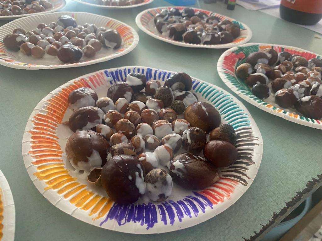 E’ stato divertente andare a riempire le scatole con castagne, foglie, ghiande e fare la gara a chi ne trovava di più.
