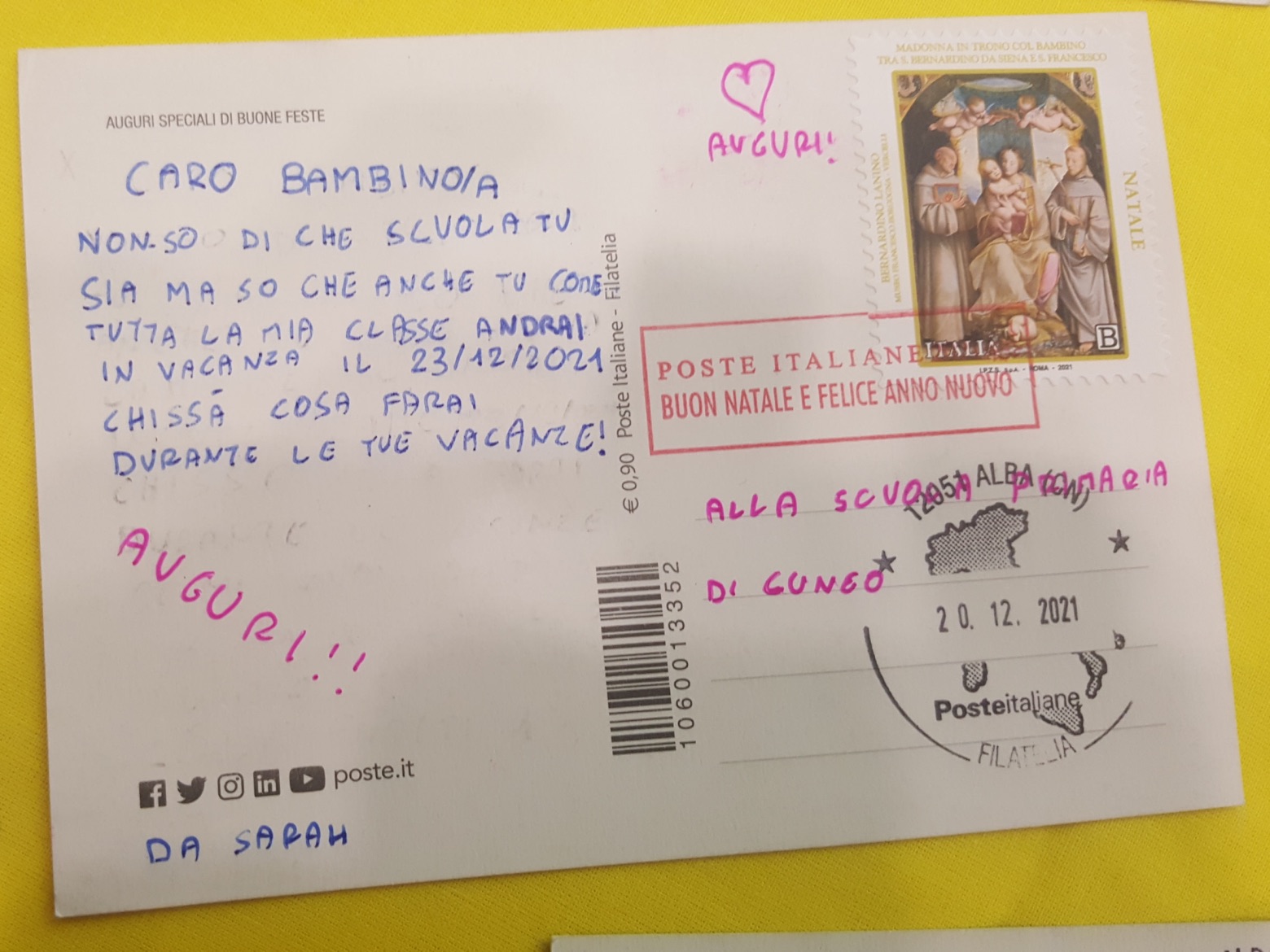 Una sorta di staffetta natalizia dal sapore antico ma del tutto nuovo per i nostri ragazzi nativi digitali, i quali hanno avuto la possibilità di riflettere sull’importanza di un pensiero scritto su carta e sul valore dei francobolli.