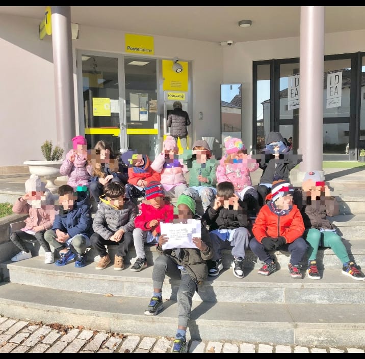 Questa mattina i bambini di 5 anni si sono recati all’ufficio postale di Piobesi per fare una consegna speciale