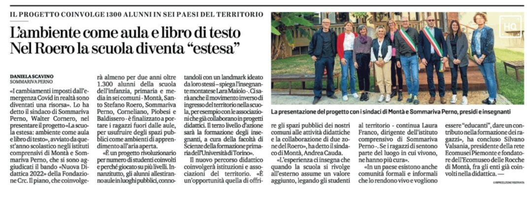 Fondazione CRC sul bando “Nuova Didattica 2022”. Si avvale del cofinanziamento e della collaborazione tecnico‐operativa dei Comuni di Montà e Sommariva Perno e di numerose associazioni del territorio.